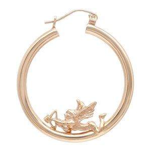 Rachel Koen Cupid Angel Hollow Round Hoop Earrings 14K Yellow Gold