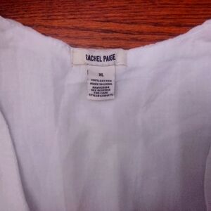 This crisp white crop top from Rachel Paige features a stylish buttoned front, perfect for adding a touch of elegance to your ensemble. Its clean design and light fabric make it an ideal choice for both formal and semi-formal occasions.