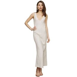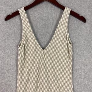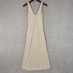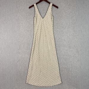 Rachel Pally Beige Gingham Bias V Neck Sleeveless Linen Blend Midi Dress Size XS