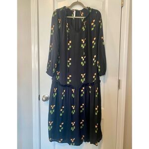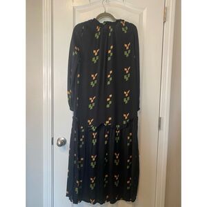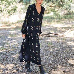 Elegant black midi dress by Rachel Pally. Features subtle floral accents. Perfect for any occasion.