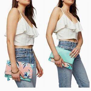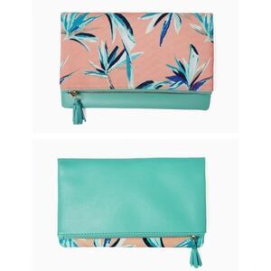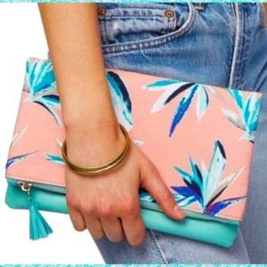 Rachel Pally Blue Reversible Faux Leather Floral Clutch