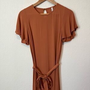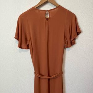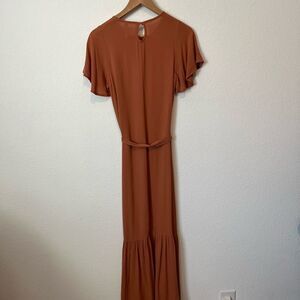 Rachel Pally Brown Short Sleeve Tie Waist Flounce Maxi Dress Women's Size XS