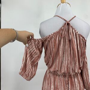 Rachel Pally Dress Womens S Small Peach Zia Raindrop Cutout Shoulder Maxi Gown