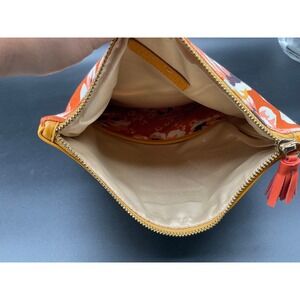 rachel pally pouch, oversized zip clutch, vegan leather bag, floral tablet case, zip bag with tassel, soft document holder, boho travel pouch, orange flower clutch, colorful fabric pouch, ipad zip sleeve, designer makeup pouch, flat pouch bag, 12x10 organizer bag
