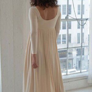 The iconic Rachel Pally Isa dress! This ultra-flattering (and ultra-comfortable) cream dress can be worn for many occasions. A modern twist on Regency elegance.