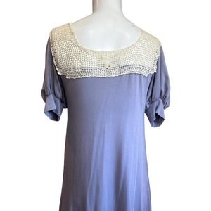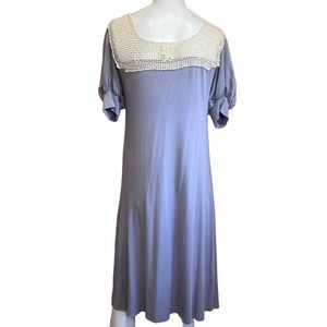 Rachel Pally Light Purple Short Sleeve Lace Trim Bodice Shift Modal Dress sz M