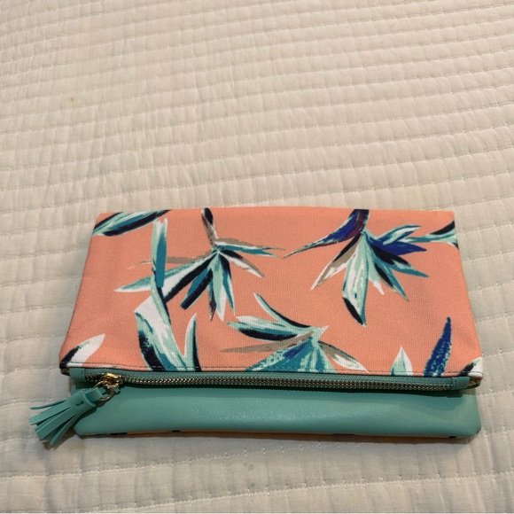 Rachel Pally Pink and Green Tropical Clutch with Botanical Design