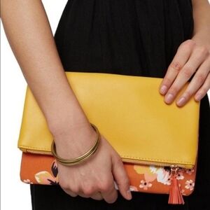Rachel Pally Orange Yellow Floral Fold Over Zipper Clutch. Can be folded either way!