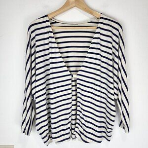 Rachel Pally Striped Overshirt Top Womens XS White Blue Dolman Sleeve USA Made