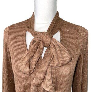 Rachel Pally Womens Blouse Brown Size Small S Lurex Knit Tie Front Top Viscose