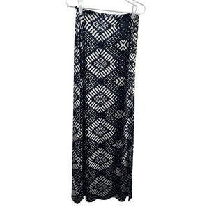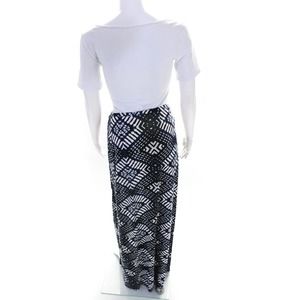 Rachel Pally Women's Geometric Print Front Slit Maxi Skirt Navy Blue Size Medium