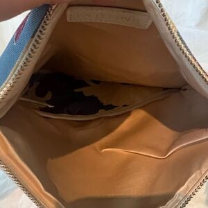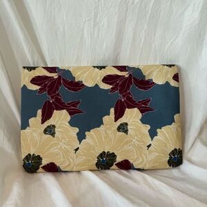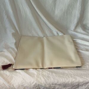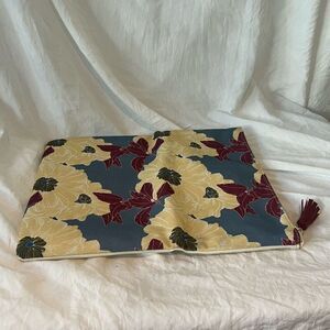 Rachel Pally Women's Cream Blue Floral Tassel Zip Closure Fold-Over Clutch Bag