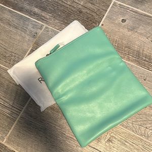Teal/peach reversible vegan leather Rachel Pally clutch - never used and stored in bag