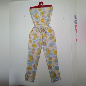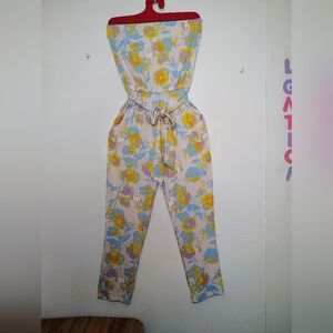 Rachel Pally strapless jumpsuit,pink With yellow flowers,pockets,modal,sz XS.