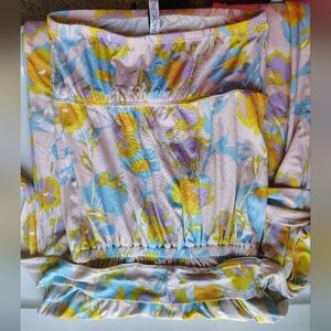 Rachel Pally strapless jumpsuit,pink With yellow flowers,pockets,modal,sz XS.