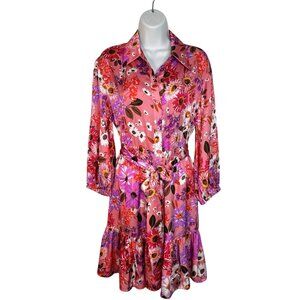 Tags: party, shirt dress, floral, retro, satin, daisy, party, wedding guest, baby shower dress, mini,
