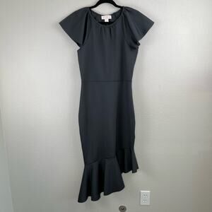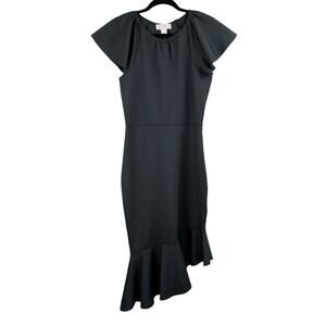 Rachel Parcell Black Ruffle Interlock Scuba Asymmetric Midi Dress XL NWOT