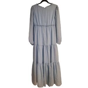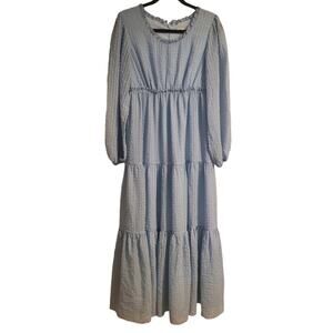 Rachel Parcell Blue Maxi Cottage Core Prairie Seesucker Dress Sz S