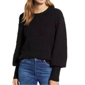 Rachel Parcell Bobble Stitch Bishop Sleeve Sweater in Black. Size small