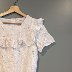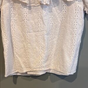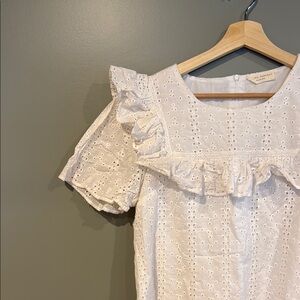 Short sleeve eyelet Rachel Parcell ruffle top with zip back. It needs to be ironed