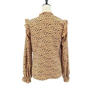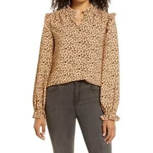 Rachel Parcell Leopard Animal Print Long Sleeve Ruffle Shoulder V-neck Blouse