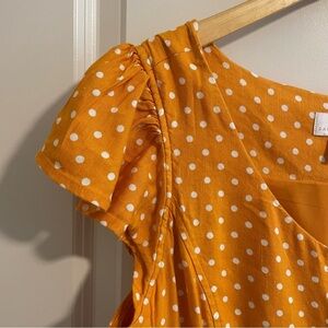 Rachel Parcell Linen Blend Polka Dot Button Front Midi Dress Orange Citrus M