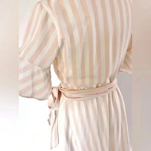 Rachel Parcell Linen Blend Wrap Dress Pink and White Striped Ruffle Midi Small