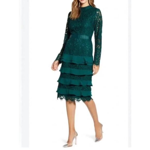 Rachel Parcell Long Sleeve Green Lace Tiered Cocktail Dress