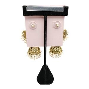 Rachel Parcell Peacock Filigree Jhumka Earrings Gold Tone, Enamel & Pearl Drops