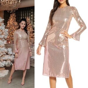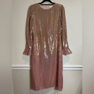 Rachel Parcell Pink Ombre Sequin Long Sleeve Midi Dress Size Medium