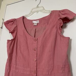 Rachel Parcell Pink linen blend button down midi ruffle hem dress size XL