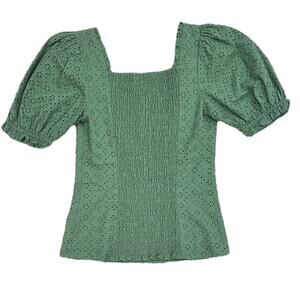 Rachel Parcell Puff Sleeve Green Eyelet Top - new condition