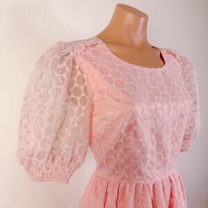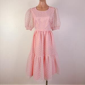 Rachel Parcell Puffy Sleeve Midi Dress Pink Princess 80s Romantic Coquette S NWT