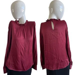 Rachel Parcell Red Grape Ruffle Neck Satin Blouse
