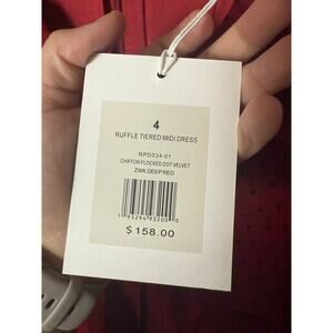 NWT Rachel Parcell Red with Polka Dot Chiffon Flocked Tiered Ruffle Midi Dress Size 4