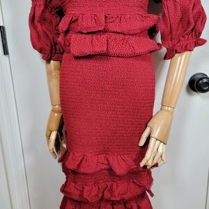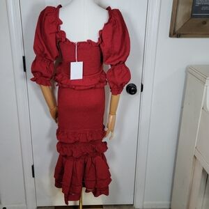 Rachel Parcell Red Smocked Midi Dress Size Small Holiday Christmas Party Dress