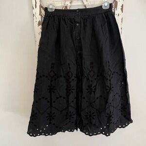 Rachel Parcell Skirt Womens XS Midi Eyelet Linen Washed Out Black Button Pull On