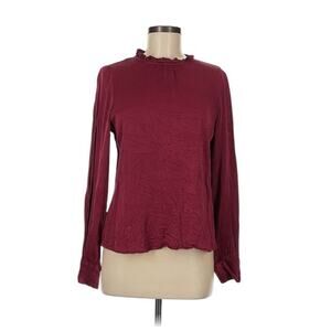 Rachel Parcell Womens Blouse Small Burgundy Ruffle Career Viscose Mockneck