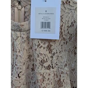 Rachel Parcell Women's Metallic Lace Mini Dress Sz 8 Gold Long Sleeve Feminine. Dress is listed as excellent condition because it may have been worn or tried on. It does still have tags attached.