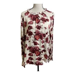 Rachel Parcell womens floral roses silk blouse high ruffle neck. Long sleeves. Size Large.
