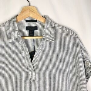 Rachel Rachel Roy Blue & White Pinstripe Popover Linen Short Sleeve Top S