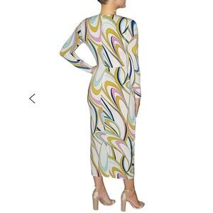 Vibrant swirls breathe life to this jersey dress finished with a wrap-style bodice and a sarong-inspired midi-length skirt.