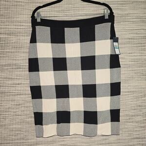 Rachel Rachel Roy Skirt Womens 0X Black Cream Buffalo Plaid Pull On Midi Knit