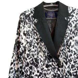 Rachel Rachel Roy Leopard Print Long Blazer Suit Jacket Black White Size 2