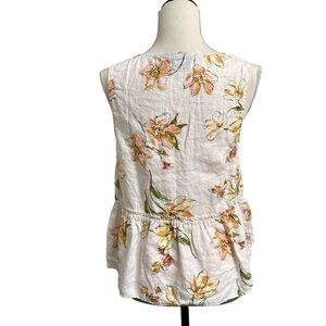 Rachel Rachel Roy blouse, linen floral top, sleeveless peplum blouse, pink summer blouse, feminine floral shirt, garden party outfit, lightweight linen top, vacation style, soft pastel blouse, breezy summer fashion, chic casual top, Rachel Roy linen peplum.