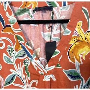Rachel Rachel Roy Linen Floral Top 2X Tropical Flutter Sleeve V-neck NWT