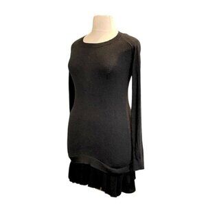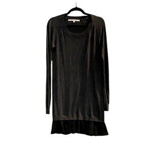Rachel Rachel Roy Long Sleeve Crew Neck Gray Sweater Dress Black Ruffle Hem Sz L