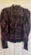 Plaid pattern, puff shoulders, button cuffs, ruffle accents, button front closure