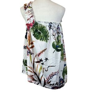 Rachel Rachel Roy One Shoulder Floral Asymmetric Hem Blouse White Size Medium