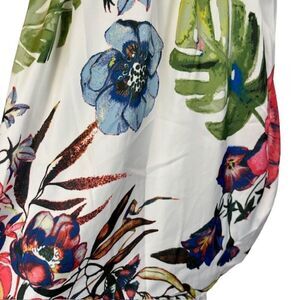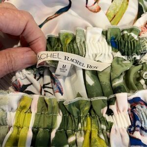 Rachel Rachel Roy One Shoulder Floral Asymmetric Hem Blouse White Size Medium. Excellent condition. Shoulder and top are elastic and super stretchy. Top is light and breezy, airy. Pretty floral print in blue, coral, green, rust. See photo for details and unstretched measurements. Tropical, palms, hawaii, island, cruise, beach, date night, travel, vacation, festival, music, sexy and romantic, cold shoulder, bare shoulder